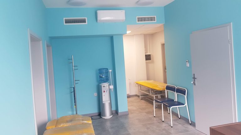 Prace polegały na kompleksowym wykończeniu wnętrz dla rozbudowy przychodni zdrowia.